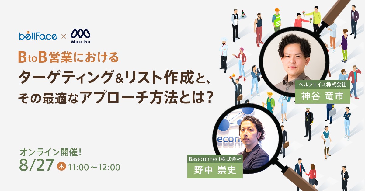 そのようなお悩みを解決すべく、アプローチ先リスト作成を安価に効率化できるサービスを提供する「Baseconnect」と、速やかに商談を行えてリードタイム短縮にも貢献できるサービスを提供する「ベルフェイス」にて共催セミナーを開催します!
