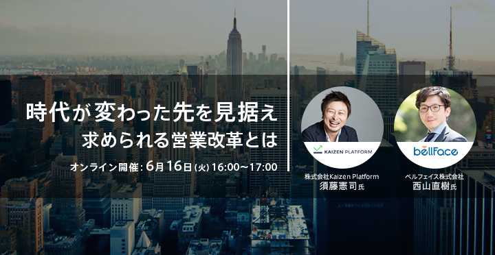 どのような観点で考えていくべきなのか、企業は既にどのように変化しているのか。これらについて「Kaizen Platform」と「ベルフェイス」の2社よりお話させていただきます。急激に求められた営業改革、皆さまの道筋の参考になりましたら幸いです。ぜひお気軽にご参加ください!