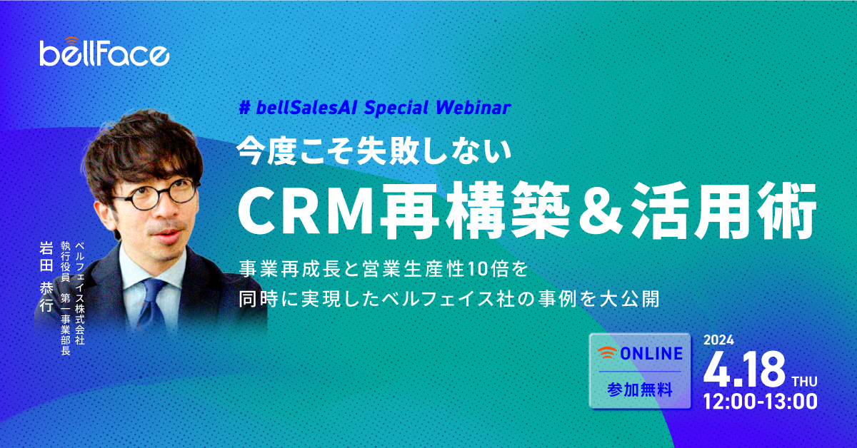 今度こそ失敗しないCRM再構築&活用術~事業再成長と営業生産性10倍を同時に実現したベルフェイス社の事例を大公開~