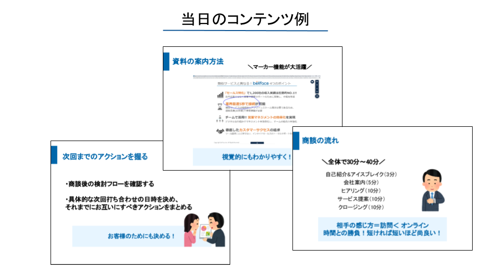 2,000社以上に導入いただいたことによって蓄積された膨大な営業ノウハウ。このセミナーでは、それらを惜しみなく大公開します。商談のクオリティがこの日から上がること間違いなし。ベルフェイスの数あるウェビナーの中でも、特に人気のテーマとなっています。