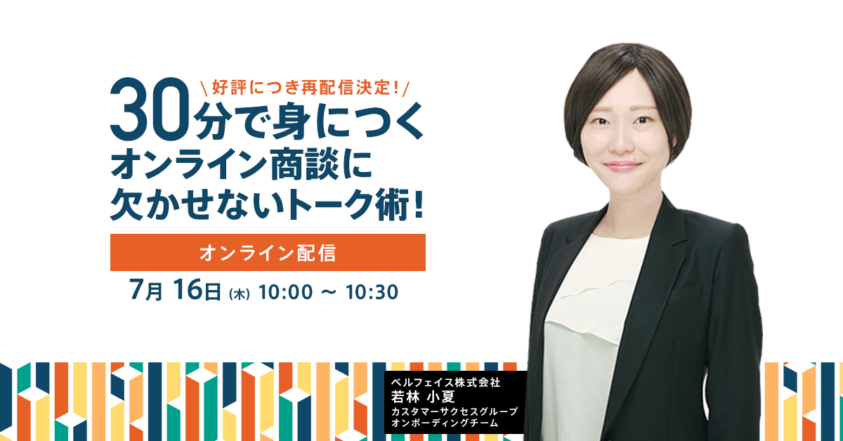 このようなベルフェイスの特徴を生かして、オンライン商談における基本の話し方を学び、オンライン商談でも成果がでる営業を目指しましょう!