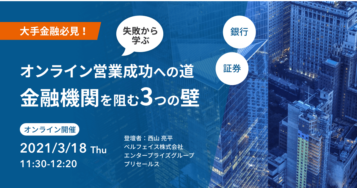 本ウェビナーでは、銀行・証券会社がオンライン営業を成功に導くために必要なことを事例も交えながらお話しいたします。ぜひご参加ください。