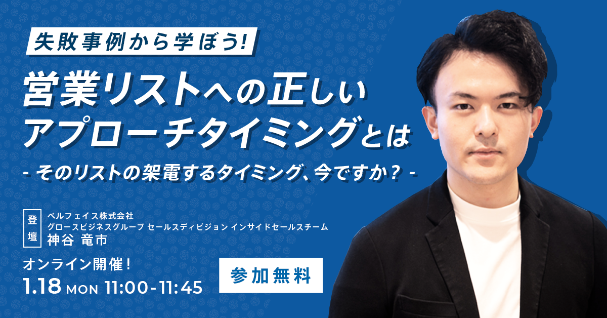 今回はそんな弊社の営業リストのアプローチ法における本当にあった失敗事例から学び、アポイント獲得につながるアプローチタイミングについて徹底的に解説します!是非ご参加ください。