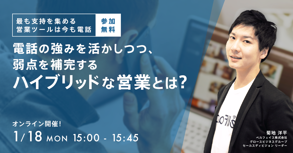 本セミナーでは、そんな電話だからこそ展開できる強みを活かしつつ、弱点を補完できるハイブリッドな営業手法についてお話します。