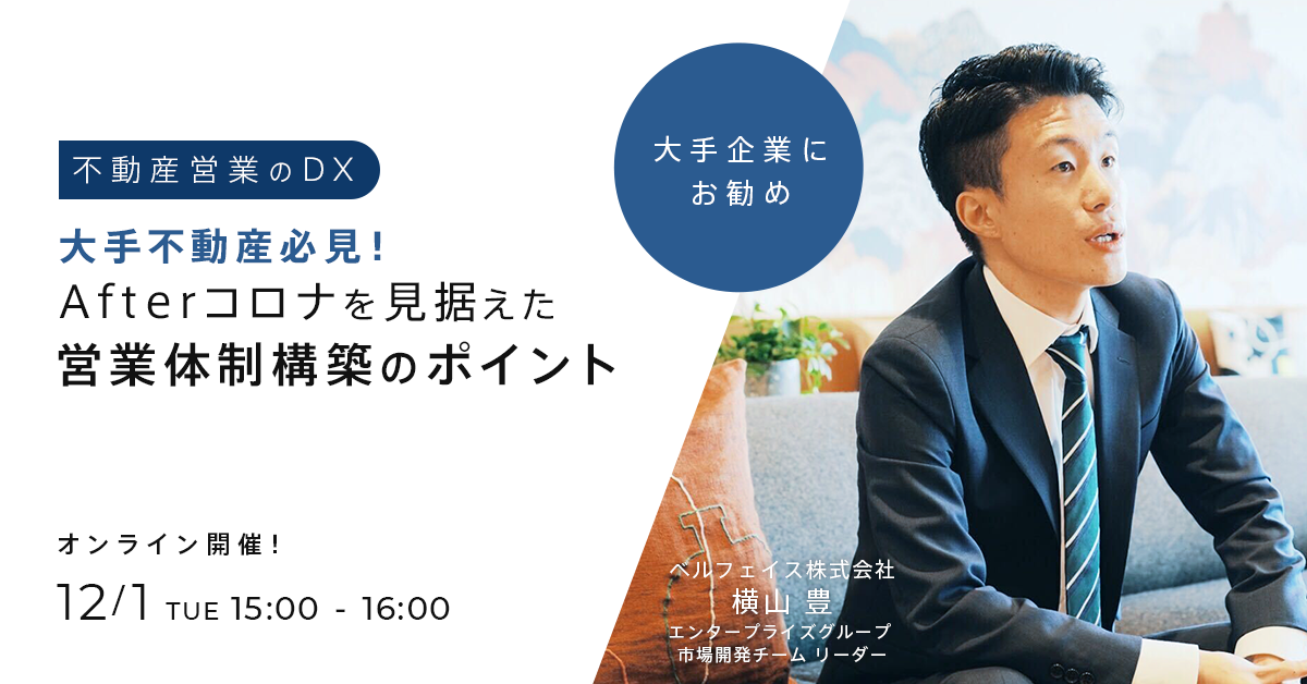 本ウェビナーでは、特に大手不動産業界の営業職の方向けに、これからの営業生産性を最大化するためのDX化・体制構築のポイントについてお話します。